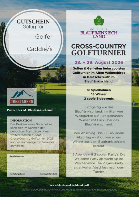 Schenke zu Weihnachten oder zum Geburtstag ein unvergessliches Erlebnis: einen Gutschein für das Cross-Country Golfturnier 2026 im Blaufränkischland!